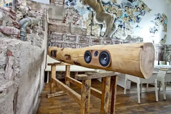 Австрийский дизайнерский дом KMKG STUDIO придумал iTree – это док-станция для таких устройств, как iPod, iPhone и iPad, представляющая собой вручную выдолбленный изнутри ствол дерева, напичканный динамиками и электроникой.