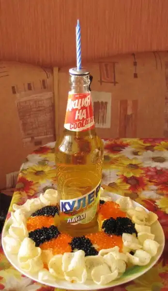 Вот такой вот "тортик" любимаю жена принесла мне в постель. Понятно, что "начинка" может быть любой подходящей.