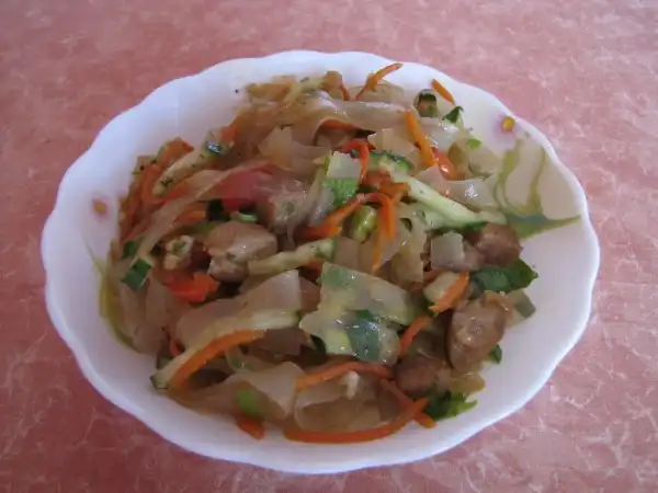 Ашлянфу - лапша из крахмала золотистой фасоли. Впервые с ашлянфу познакомился в 2003 году в одном из кафе в Бишкеке. Там на основе ашлянфу уйгуры делают летний холодный острый суп. Этот рецепт был перенят у китайцев.