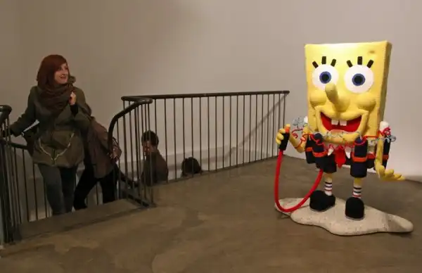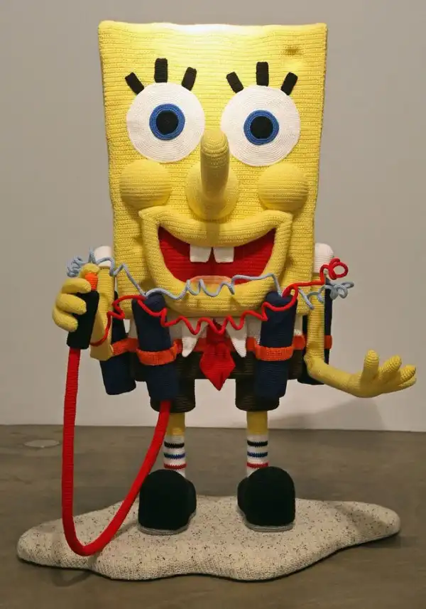 Вязаная скульптура «Губка Боб» Патрисия Уоллер, превратившая культового персонажа мультфильма в террориста-смертника.