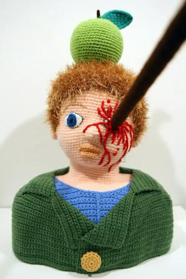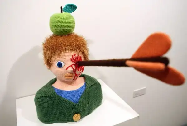 Вязаная скульптура «Вильгельм Телль». В яблоко попасть, судя по всему, не получилось.