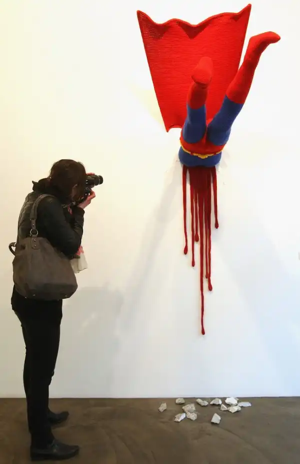 Вязаная скульптура «Супермен». Персонаж комиксов, наделенный сверхчеловеческими способностями, в своем последнем полете несколько не рассчитал траекторию.