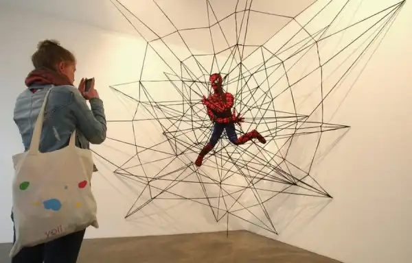 Вязаная скульптура «Человек-паук» – отважный супергерой пал жертвой собственной паутины.