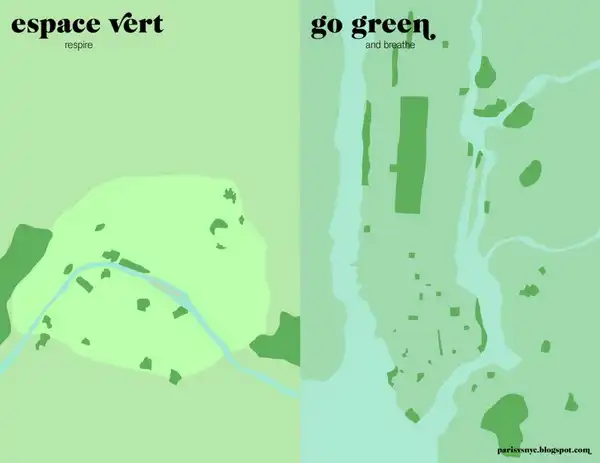 "Париж против Нью-Йорка, счет двух городов" («Paris vs New York, a tally of two cities») - это дружеский визуальный матч между двумя этими городами, через призму взгляда парижанина, влюбленного в Нью-Йорк. Французская графическая студия ViiiZ (творческим стержнем которой является Vahram Muratyan) использовала все возможные клише и противопоставления: Квазимодо против Кинг-Конга, Эйфелева башня против Эмпайр Стэйт Билдинг, миндальное печенье против пирожных, багет против пончиков, парижский голубь против нью-йоркской крысы, metro против subway, Годар против Вуди Алена и так далее.