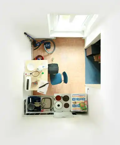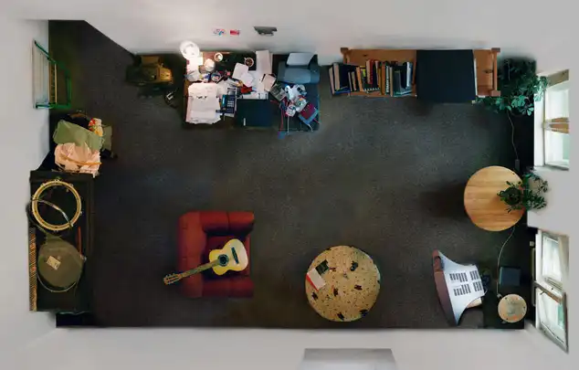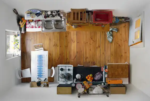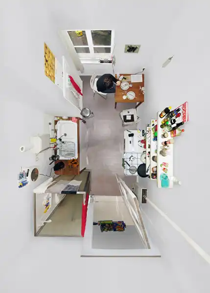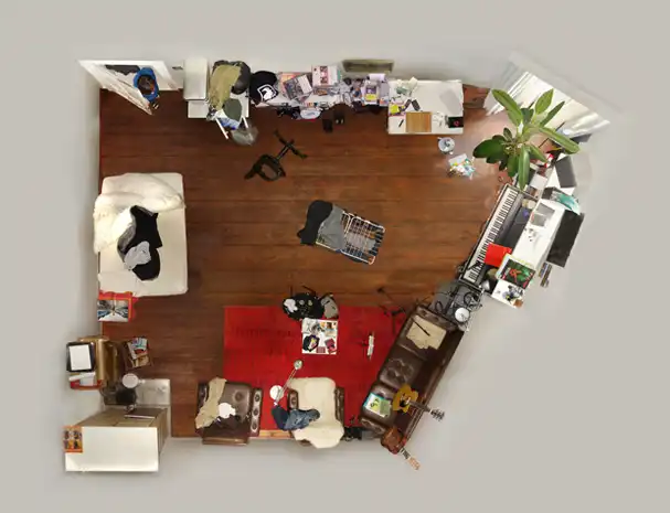Немецкий фотограф Менно Аден (Menno Aden) снял серию фотографий Портреты комнат (Room Portraits), для создания которой он закреплял фотокамеру на потолке комнаты.