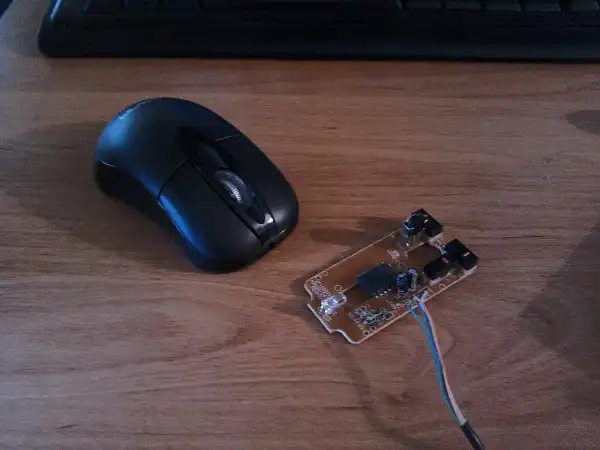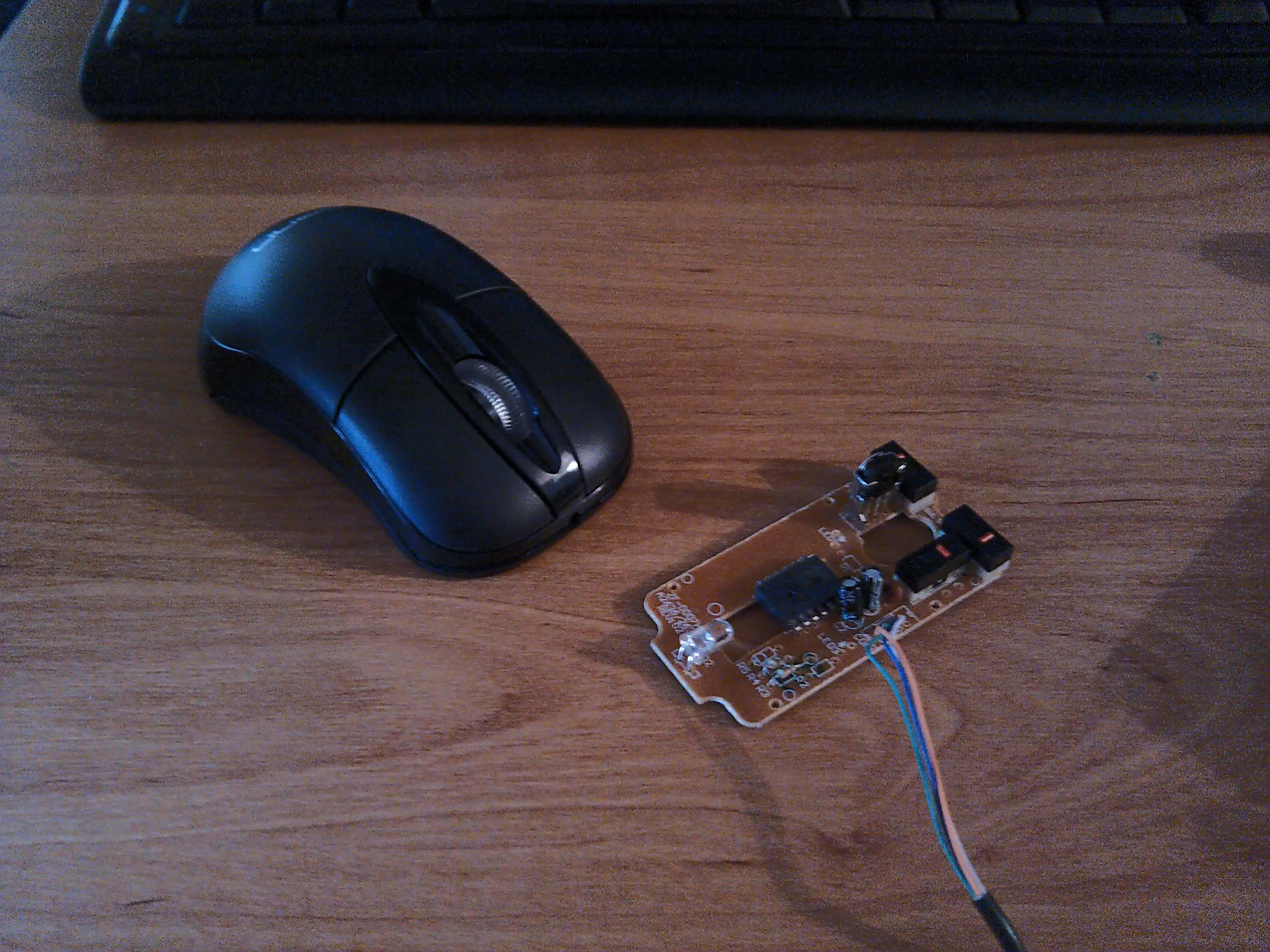 Была взята самая простая и дешевая мышь. Ее успешно разобрали и получили доступ к "начинке".