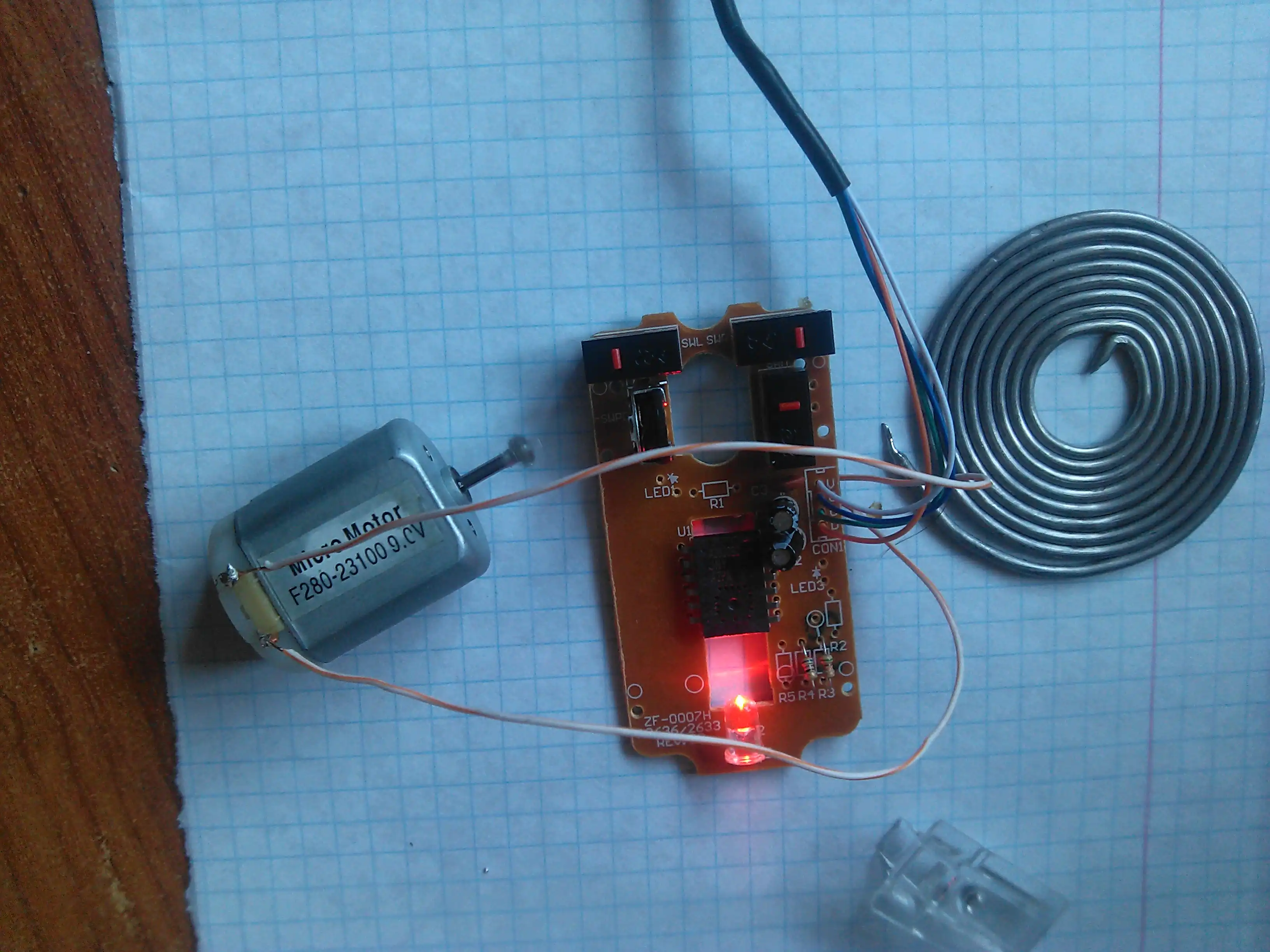 Определили чем питается мышь и скромно подпаяли к ее питанию питание для ЭлМ. Также на кончике оси ЭлМ напаяна специальная насадка для идеальной совместимости с механизмом скроллинга (самая ответственная часть, т.к. биения оси недопустимы)