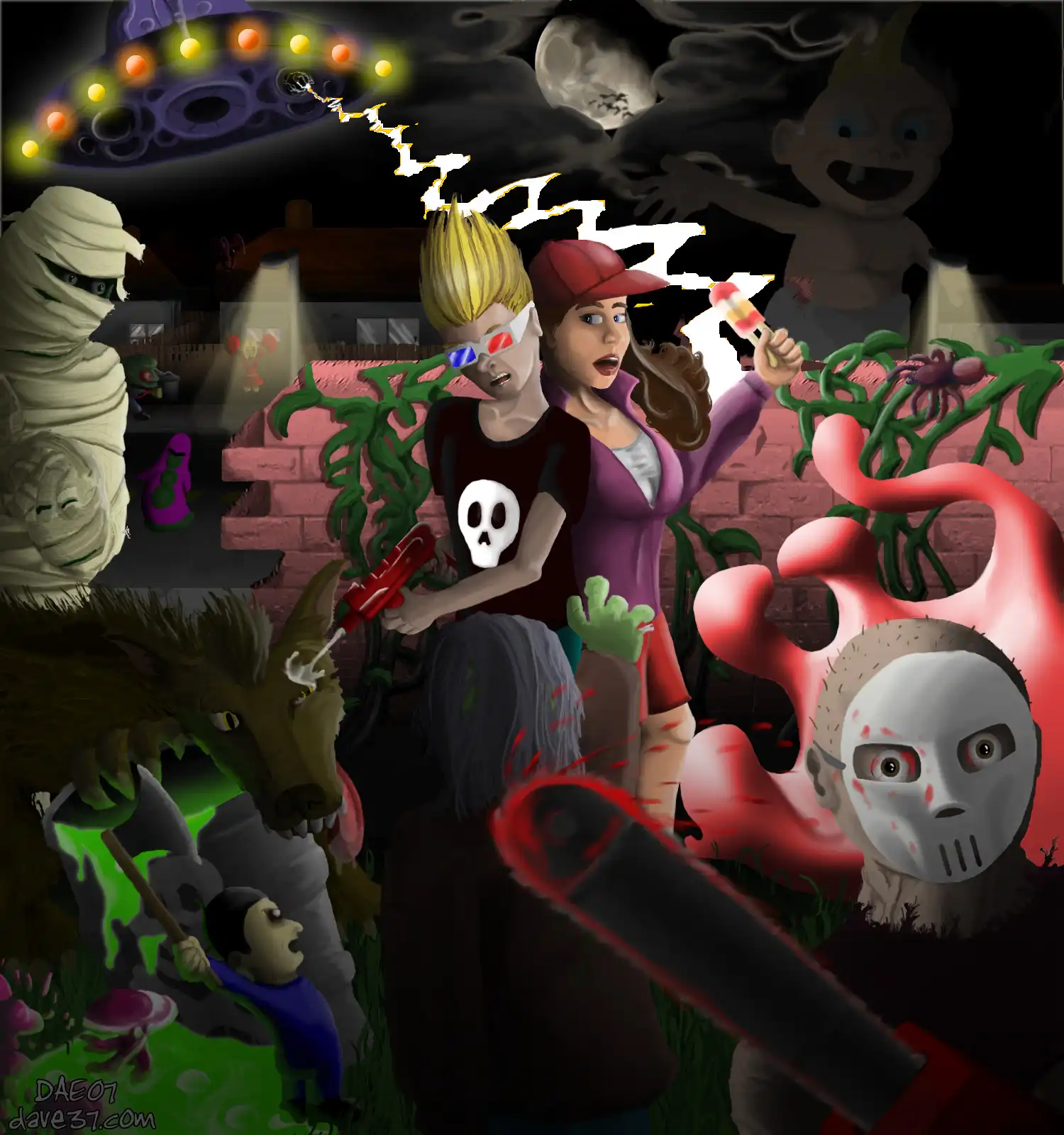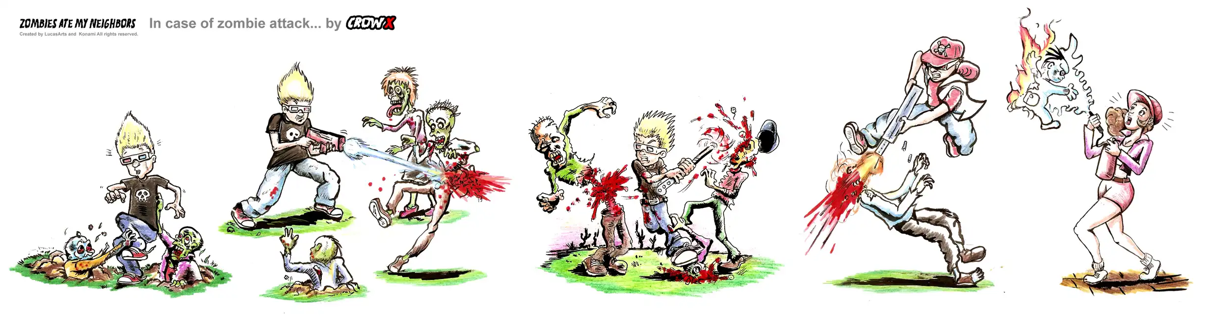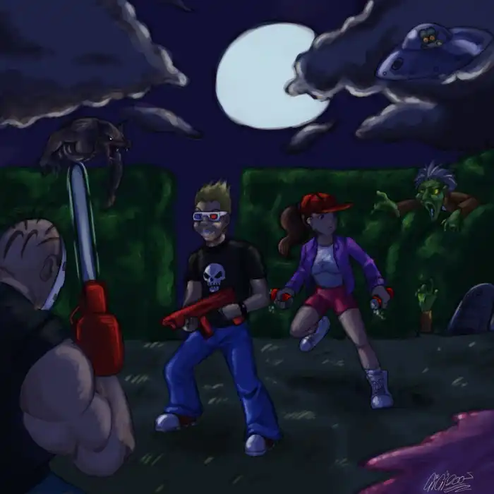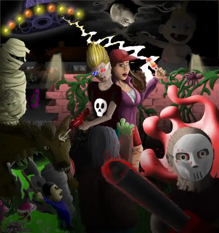 Кто еще не заметил (или не знал), это аркада для одного/двух игроков (платформы - Sega Mega Drive/Genesis, SNES, Virtual Console), пародирующая практически все известные штампы голливудских фильмов ужасов до 90-х годов.