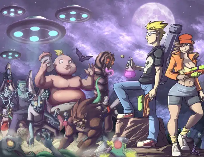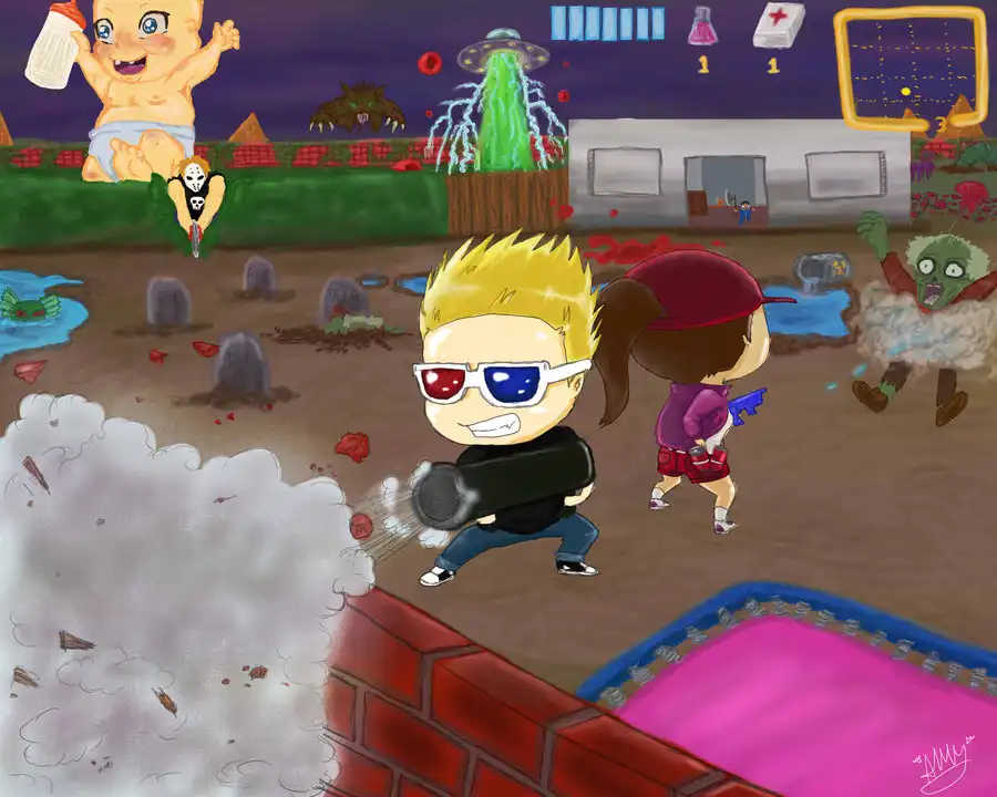 Игра содержит много юмора, высмеивающего фильмы ужасов. Это касается не только врагов и локаций, но и оружия и экипировки героев. Также сам мультипликационный стиль игры переполнен шутками (например, чего стоит выражение лица сурового солдата, увидевшего приближение монстров).