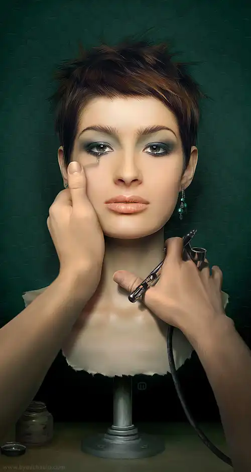 Сегодня работы MichaelO не только коммерчески успешны, но и стилистически уникальны. Мишель работает по фотографии. Придумывает концепт изображения, подыскивает подходящую модель, делает около 400 кадров за съемку, отбирает 3-4 лучших, а затем садится за десктоп, жевать Cheetos и преобразовывать фото до неузнаваемости. Инструментарий художника составляют Canon 5D с объективом 50мм, 1.4, четырехядерный PC с 6 гигабайтами оперативки, Photoshop CS2.