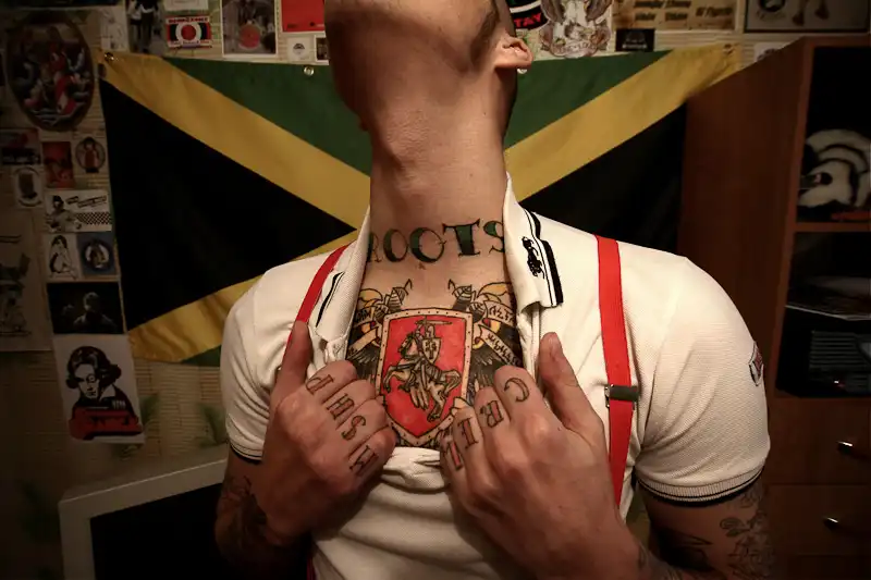 “Символ с всадником на коне когда-то был в Беларуси государственным гербом и знаком гордости. Теперь в стране он запрещен и стал символом национального протеста среди молодежи, который они сохраняют на своем теле в виде татуировки. Исторический символ всадника на коне стал государственным гербом Беларуси в 1991 году. После прихода к власти Александра Лукашенко этот герб был запрещен, а на его место в 1995 году были возвращены советские государственные символы Республики Беларусь. Изображения с всадником на коне «Погоня» всяческим образом стиралось из окружающей действительности – они были заменены на национальной валюте, в паспортах, в университетах и даже учебниках. За демонстрацию на улицах белорусских городов изображений с «Погоней» граждане могут быть арестованы или оштрафованы. Этот герб для патриотической белорусской молодежи стал символом протеста и исторической памяти, который они сохраняют на своей коже.”
