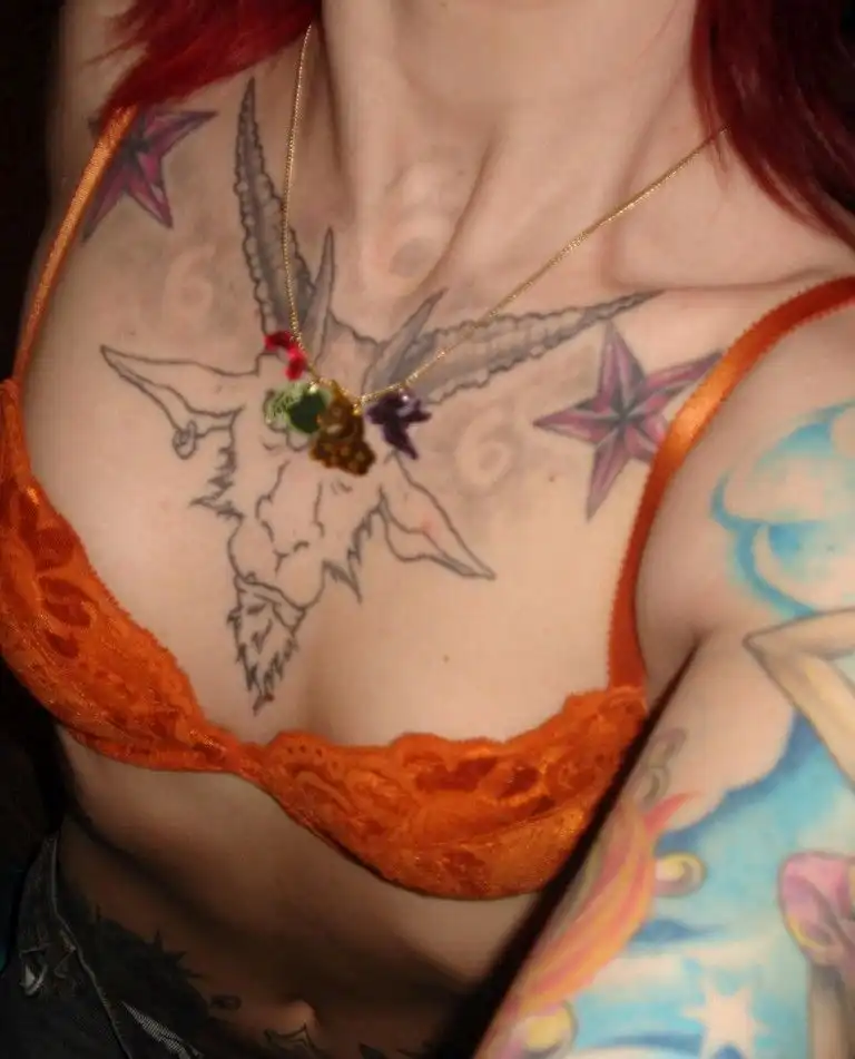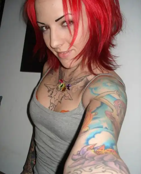 Попал я на профайл одной занимательной барышни и решил поделиться с вами фоточками из ее фотоальбома. Чего то я не понимаю в этой жизни, видимо. Вроде как симпатичная девушка. Но почему-то она нарисовала себе брови, выкрасила волосы в красный цвет и забила свое тело татуировками, одна из которых - морда Сатаны и три шестерки на груди. Как бы вы отнеслись к такой барышне? Мне стремно, почему-то - мало ли какие тараканы у нее в голове.