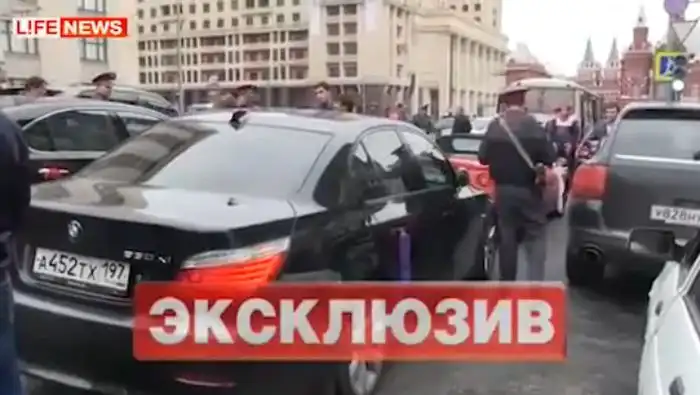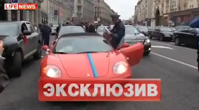 По словам одного из участников кортежа, их задержали за то, что их автомобили громко сигналили,