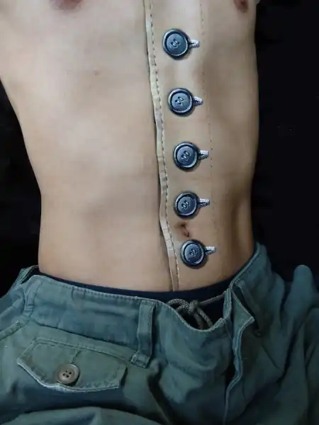 Вот, например, расстегнувшиеся пуговицы, нарисованные на довольно упитанном брюшке одного из мужчин-моделей.