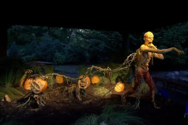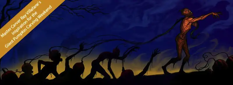 Рэй и его команда вырезают из тыквы зомби «ростом» в 1,8 метров, который за тыквенные «волоски» тянет из-под земли своих неживых коллег.