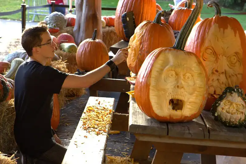 Эти выходные мастер резьбы из тыкв Рэй Виллафэйн и его команда талантливых «гравировщиков» провели в поте лица. Еще бы! На носу Хэллоуин, а ведь тыквы – их главный рабочий материал. На этот раз Рэй и его команда решили поиздеваться над самыми большими тыквами в США. Что ж, судя по этим фотографиям, они действительно любят свое дело и праздник Хэллоуин.