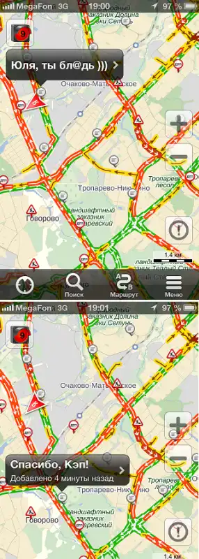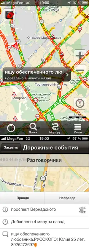 "2 дня назад стоял, как обычно, в пробке по дороге домой. увидел занимательное сообщение, не смог устоять, чел потом поддержал))