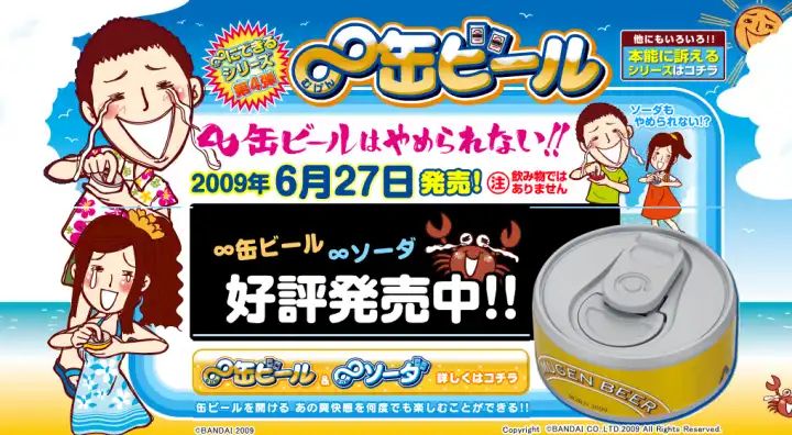 Японская компания Bandai, прославившаяся в первую очередь благодаря тамагочи, в последнее время успешно продаёт разную необычную мелочовку тиражами в сотни миллионов экземпляров. Еще Bandai вывела на рынок своей страны «Бесконечное пиво» (Mugen Beer). И хотя никакого пива в этих банках нет, производитель рассчитывал продать за первый год 50 миллионов единиц своего странного товара по 819 иен ($8,3) за штуку.