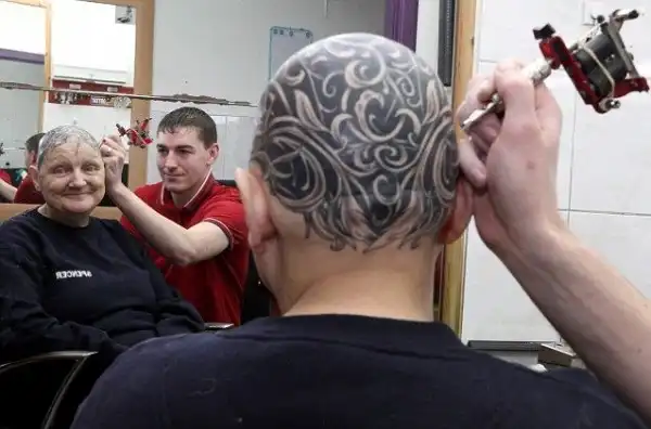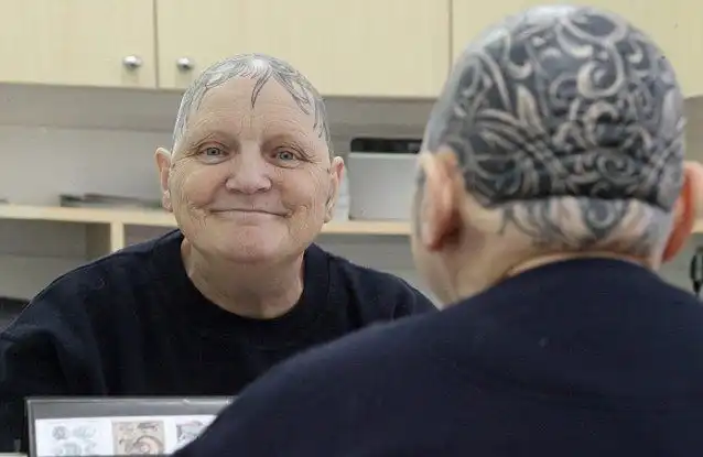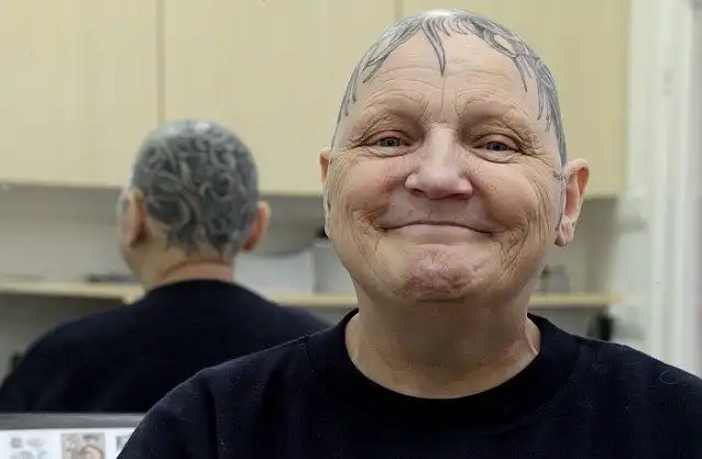 Как известно, для мужика лысина - это не проблема, а признак сексуальности. Главное - грамотно ее преподнести. А вот для женщины лишиться волос - это катастрофа. Однако 60-летняя Энн Макдональд, которая облысела в результате проблем со щитовидной железой, решила не морочиться с париками и сделала себе татуировку на всю голову. Молодец бабулька.