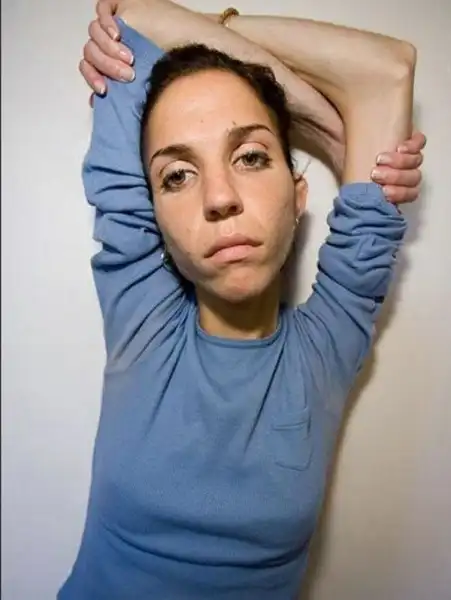 Кэйти, 48 лет, Syracuse, New York, держит в руках собственную челюсть. Она болеет анорексией 33 года и совсем недавно весила почти 31 кг.