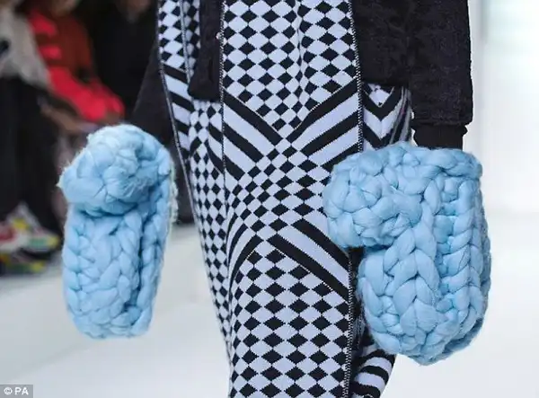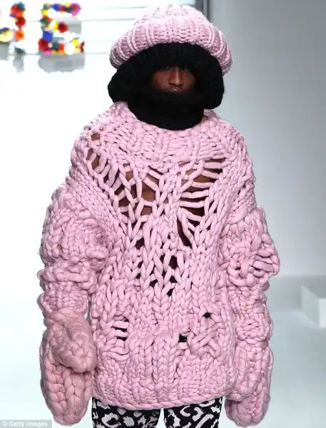 Созвездие дизайнеров Joe Bates, Sid Bryan и Cozette McCreery, которые сотрудничают под известным слоганом «все за одного и один за всех», представили публике огромные, свободные трикотажные джемперы и варежки в комплекте с высокими шапками. Многие из моделей, кажется, предпочли бы одежду, которая бы закрывала их лица тоже.
