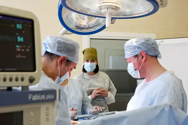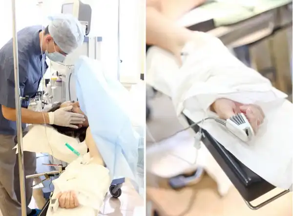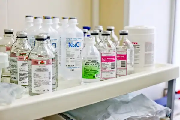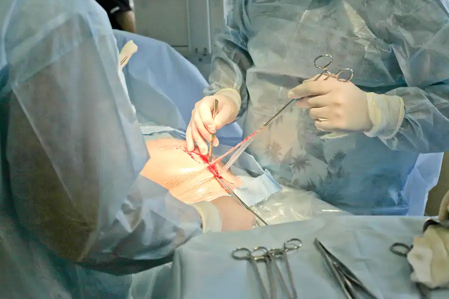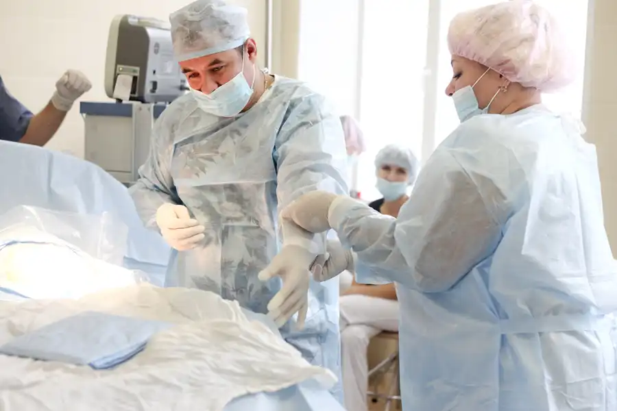 Правую руку кладут на отдельный столик. В руке стоит катетер для физраствора, и уже приготовлен шприц с седативным средством. Последнее понадобится в самом конце операции, а физраствор компенсирует потерю крови.