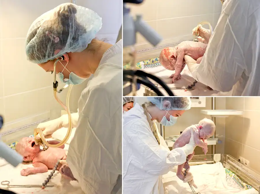 А потом уже пошли всякие измерения и взвешивания. Тем временем маму погружают в сон и зашивают.