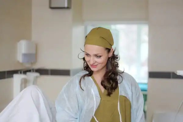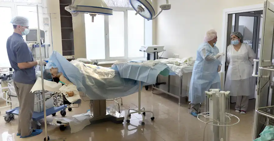 Все готово к приходу главврача и его ассистента, профессора медицины. Обратите внимание, Лена не только не будет ничего видеть за ширмой, ее тело полностью закрыто, даже место операции. Оно под пленкой, резать будут прямо по ней.