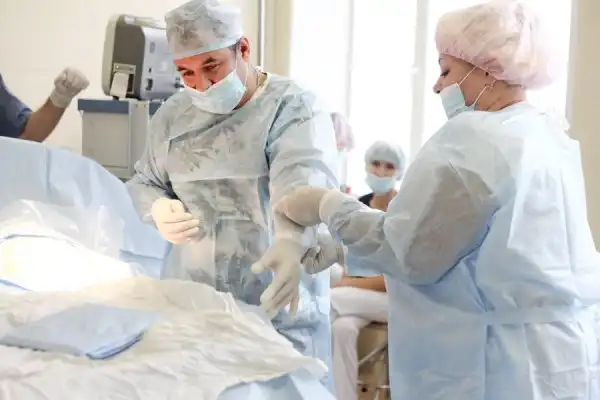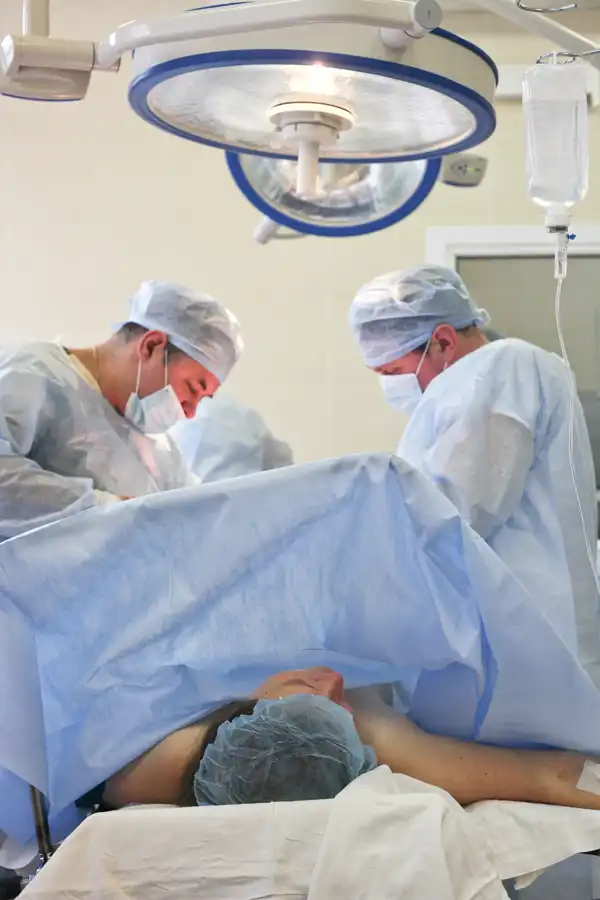Операционная готова. Лену перекладывают на операционный стол, анестезиолог наготове. Не знаю как делали раньше, но сейчас кесарево сечение делается с эпидуральной анестезией. Она блокирует прохождение нервных импульсов, проще говоря, отключает тело ниже места укола, а роженица остается в сознании.