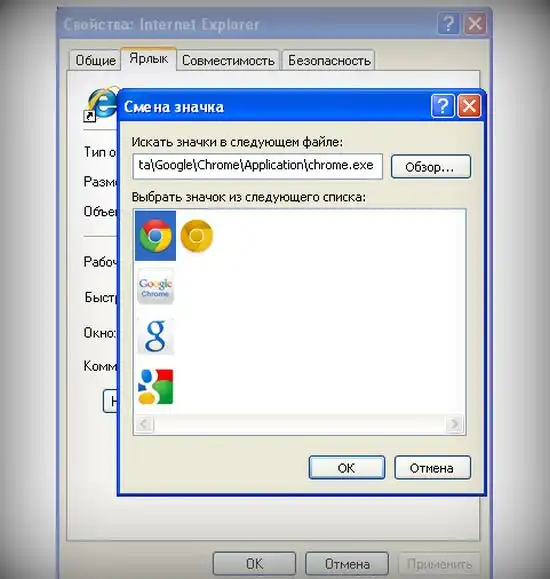 Заменяем путь на путь к значку Google Chrome. На ХР он выгляди примерно так
