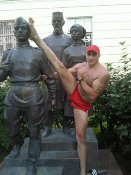 Руководитель абаканского спортивного клуба «Арктика-Ермак» Александр Березкин сообщил агентству новостей ТВ2, что Гиви Соцук "не имеет никакого отношения к кикбоксингу и боксу, потому что свою спортивную карьеру он закончил в 2006 году. ...Не думаю, что он хотел надругаться над памятником, а только продемонстрировать свою растяжку. Но в тот момент он не включил свои мозги. Порой, когда людям не хватает образования и определенного воспитания, происходят такие курьезные случаи».