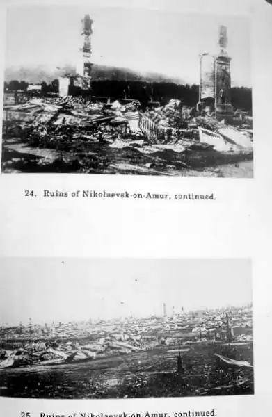 А вот что осталось от города. Никто бы не узнал про это, но большевики вынуждены были в срочном порядке уйти, потому, что на подходе были войска японцев. Не дожидаясь их появления, красные 1 июня 1920 г ушли из города, а японцы обнародовали этот факт.