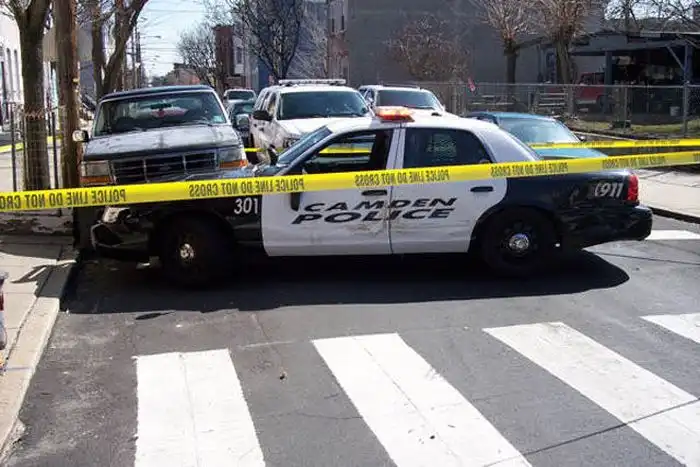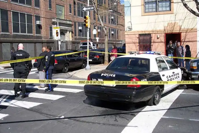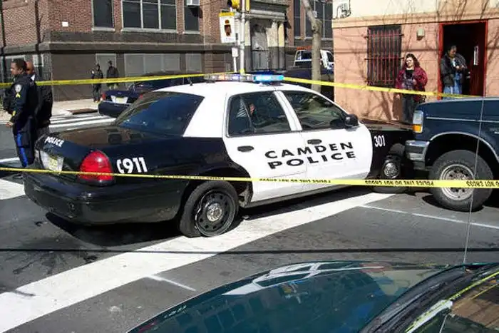 округа Камдена, в то время, как над городом кружили вертолеты с журналистами.
