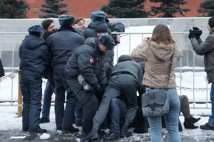 Спустя некоторое время активистов начала растаскивать полиция, при чем в буквальном смысле.