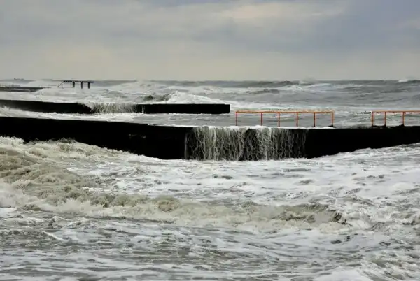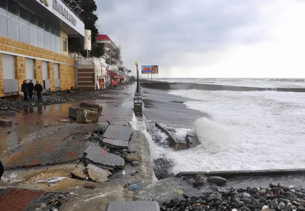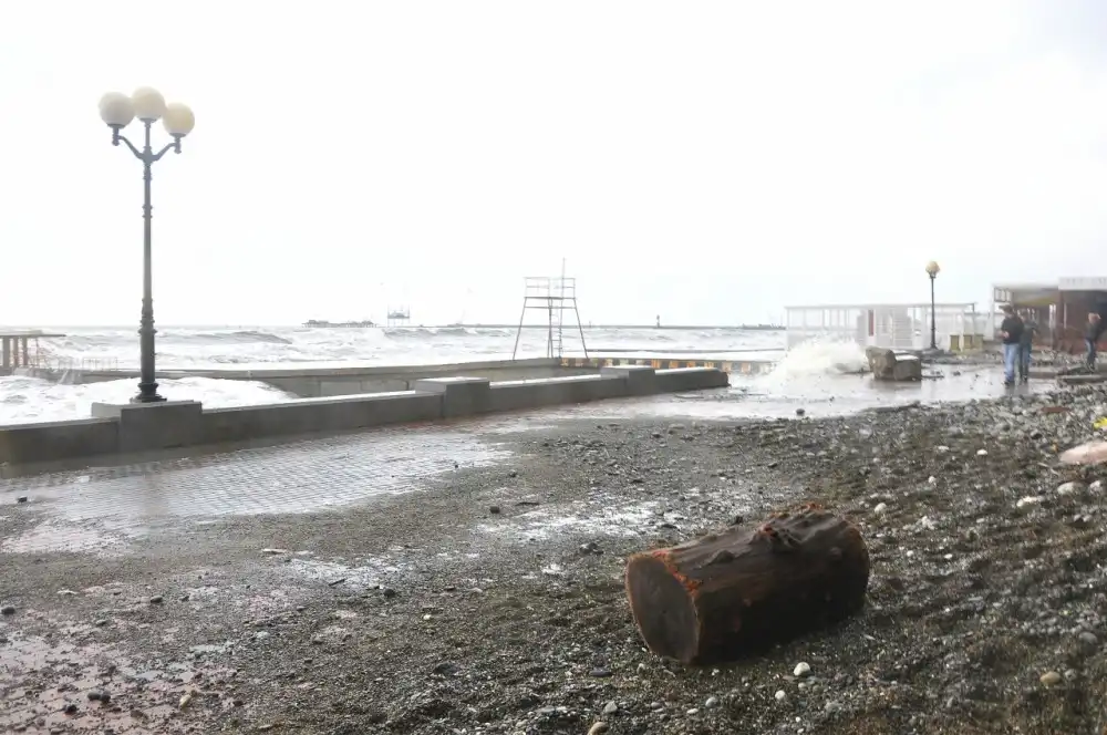 Терзавший Сочи два дня подряд шквалистый ветер “надул” сильный шторм на Черном море. Водная стихия обрушилась на побережье и вдребезги расколотила облицованный мрамором парапет, гранитную брусчатку набережной и даже крыльцо расположенного здесь пивного ресторана