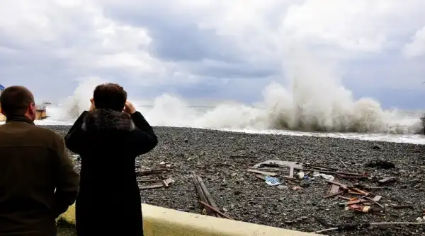 Шторм - зрелище увлекательное. Народ, не обращая внимания на дождь, холод и ветер, потянулся к морю.