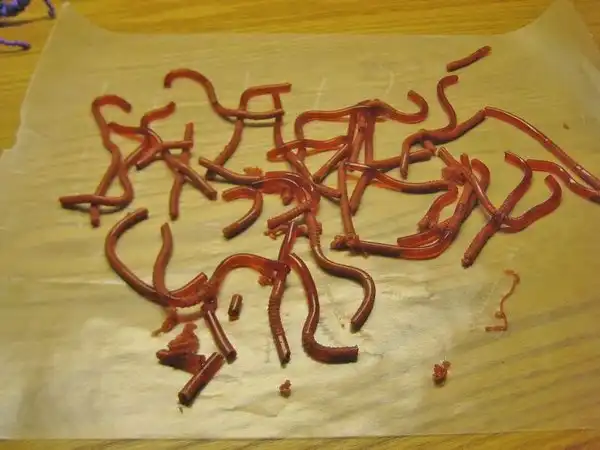 Выдавить червячков из трубочек будет легче, если немного подержать под теплой водой.