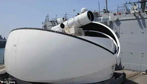 В 2011 году ВМС США испытали 15-киловаттный лазер морского базирования разработки Northrop Grumman. С его помощью удалось уничтожить небольшую надувную лодку. Руководитель научно-исследовательского управления ВМС США контр-адмирал Невин Карр (Nevin Carr) результатами испытаний остался доволен, добавив, что для поражения, к примеру, крылатых ракет военным понадобится гораздо более убойный лазер, мощностью в несколько сот киловатт.
