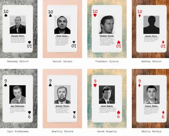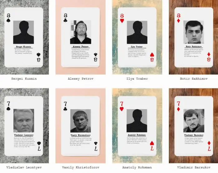 Хотите верьте, хотите нет, но в США выпустили игральные карты под названием "Русская мафия". На каждой карте - портрет какого-то из представителей организованной преступности России. Это, видимо, чтобы знать врага в лицо)) Выпустил эти карты Институт исследований России (есть у них и такой, оказывается) и подарены они будут конгрессменам, стражам порядка и прочим представителям спецслужб.