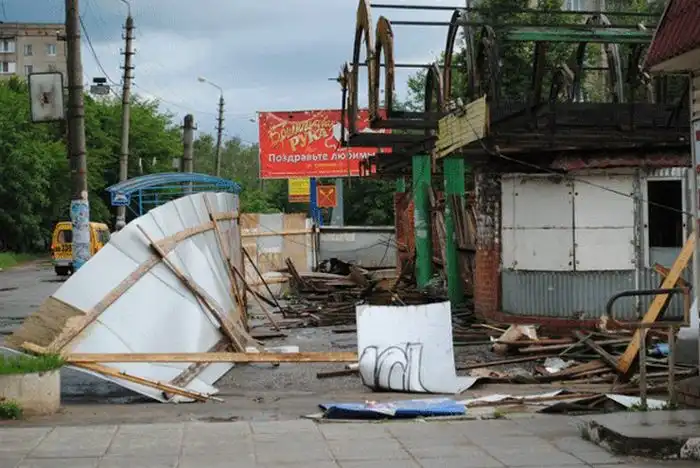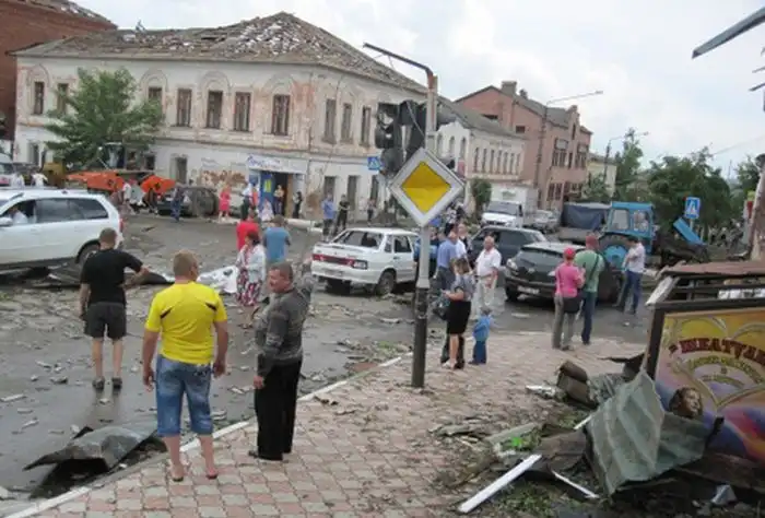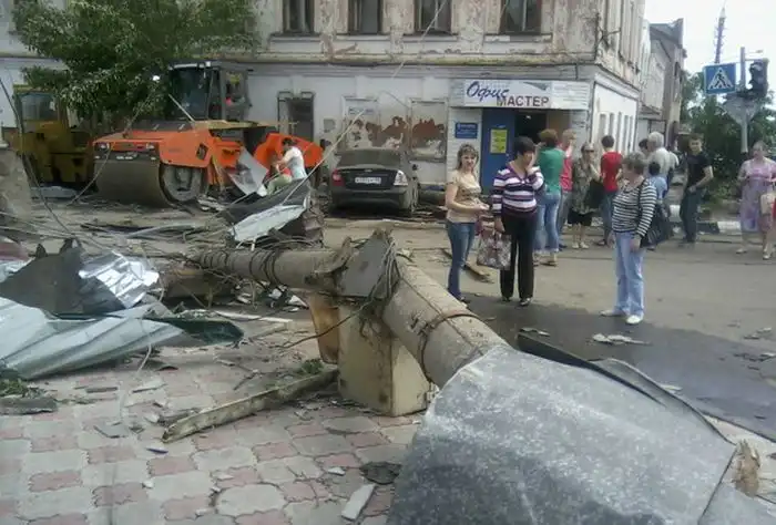 На днях в Тульской области произошел мощный природный катаклизм, а именно - по городу Ефремов прошел торнадо, сопровождаемый сильным шквальным ветром. Только лишь по предварительным данным, предоставленным МЧС, с восьмидесяти зданий в городе сорвало крыши, а также было официально зафиксировано четверо пострадавших от стихии. Торнадо прошел по центральным районам города, а спальные районы, к счастью, практически не пострадали. Смотрим несколько видео этого катаклизма в Тульской области, которые были сняты случайными очевидцами.