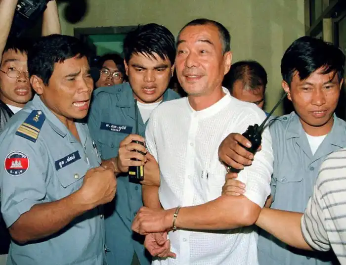 Главарь «Бамбукового союза» Чэнь Чили в суде Пномпеня, Камбоджа. 12 июля 2000 года
