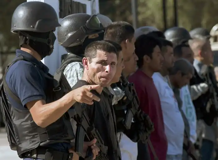 Член наркокартеля «Синалоа» Хуан Мигель Алье Бельтран на пресс-конференции в штаб-квартире полиции в Тихуане. 20 января 2011 года