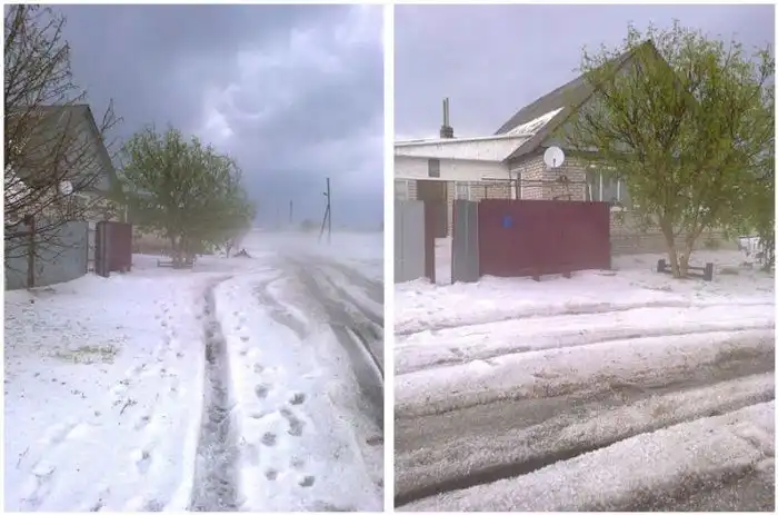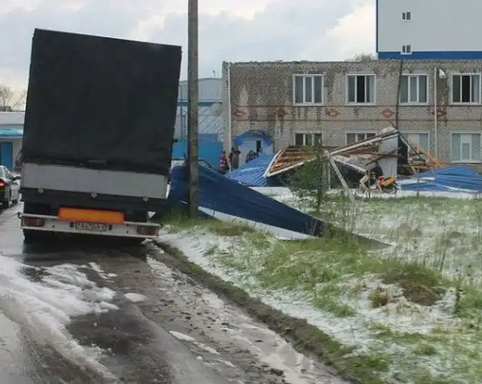 В Погарском районе Брянской области прошел мощнейший град, который уничтожил сотни кровель домов и нанес серьезный урон посевам района. Сильный ветер начался в обеденное время, а с неба посыпался град в 13.15 и продлился не более 15 минут.