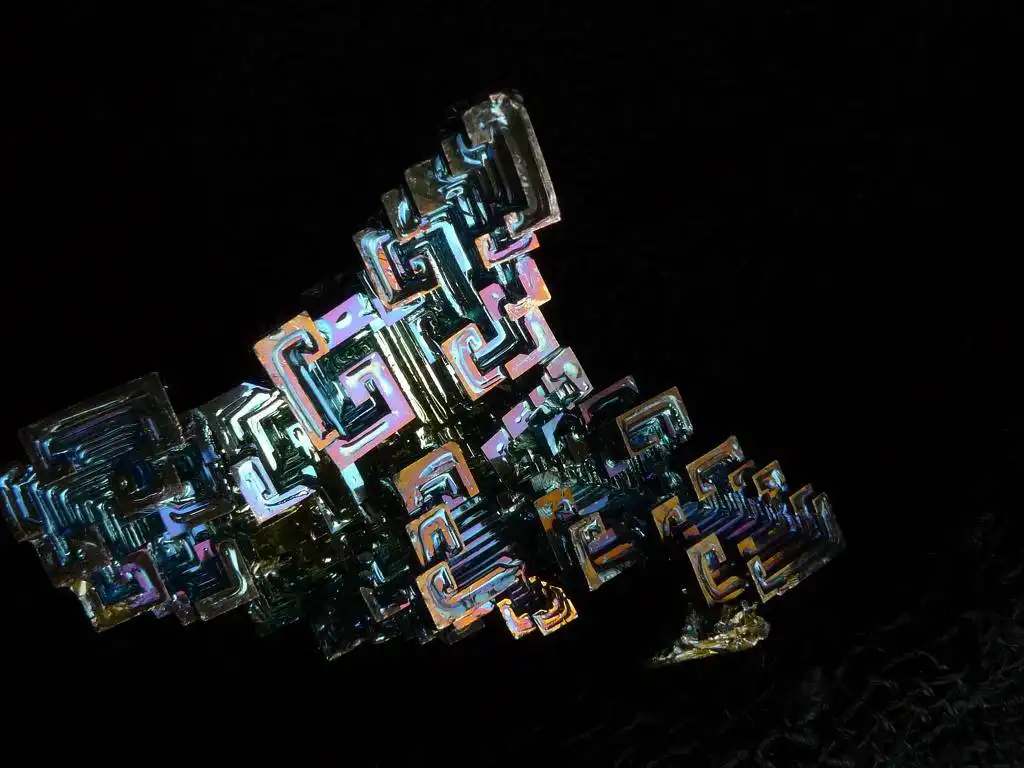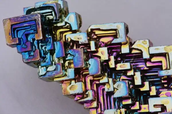Разница в цветах – это результат разной толщины слоя окиси поверх кристалла. Когда на кристаллы висмута попадает прямой свет, эти колебания в толщине приводят к разным длинам волн для прерывания отражения. Поэтому мы и получаем красивый эффект радуги.
