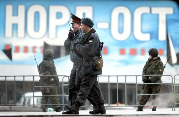 23-26 октября 2002 года: Теракт на Дубровке – группа чеченских боевиков под руководством чеченского сепаратиста Мовсара Бараева захватила свыше 900 заложников в здании Театрального центра на Дубровке. Все террористы были уничтожены в ходе штурма здания, заложники освобождены, но более 120 человек погибли от действия усыпляющего газа, применённого спецназом при штурме, в сочетании с тяжёлыми условиями, в которых находились заложники (трое суток в сидячем положении практически без еды и воды).
