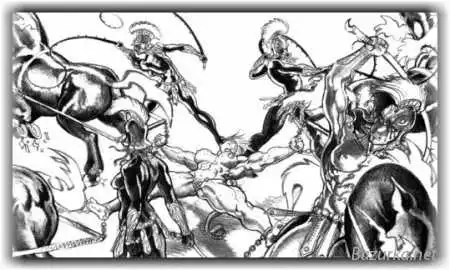Старуха прячет девушку. Далее, жених возвращается с различными испуганными дамочками, которых он разделывает и съедает. Улучив момент, первая девушка выходит из укрытия и убегает. Затем, она приглашает его в дом своего отца, на ужин (потому что нет ничего вкуснее, чем ирония), где его арестовывают. Если любите фильмы ужасов - сюжет этой сказки братьев Гримм вам покажется банальным. Вашему ребенку поломает мозг.