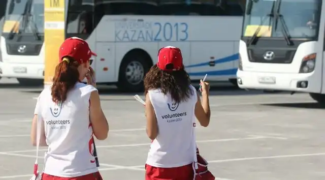 В Универсиаде задействовано 20 тысяч волонтеров из 25 стран мира. «Волонтер» буквально означает «доброволец», но в блогах появились жалобы, что казанских студентов сгоняют на Универсиаду под угрозой административных кар: в случае отказа грозятся усложнить сдачу сессии или не проставить практику. Работа, по словам анонимного волонтера, чей пост в сообществе «Типичная Казань» собрал больше тысячи лайков, заключается в том, чтобы банально изображать массовку на трибунах.