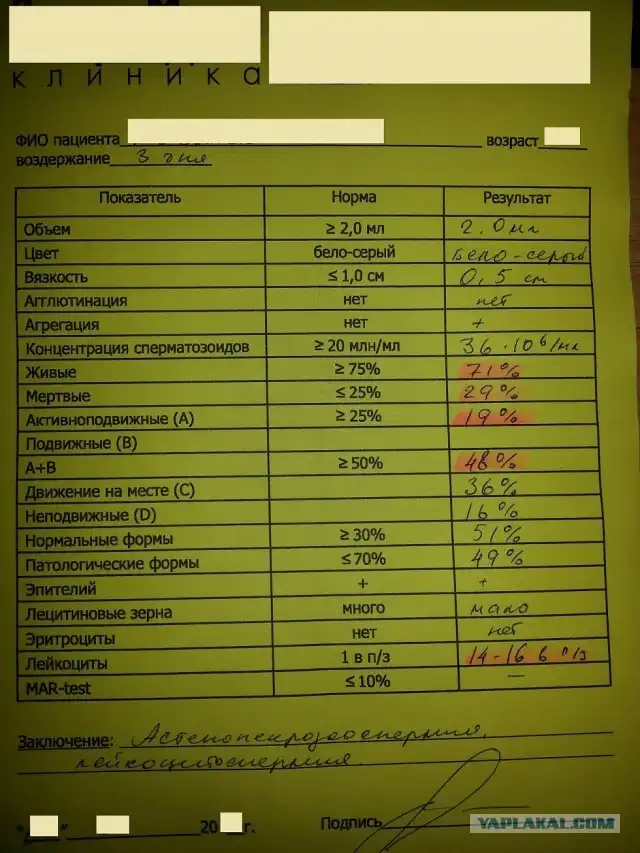 Кстати, если кто захочет повторить (), то такой анализ называет СПЕРМОГРАММА, в Питере это удовольствие () стоит порядка 1000 руб.