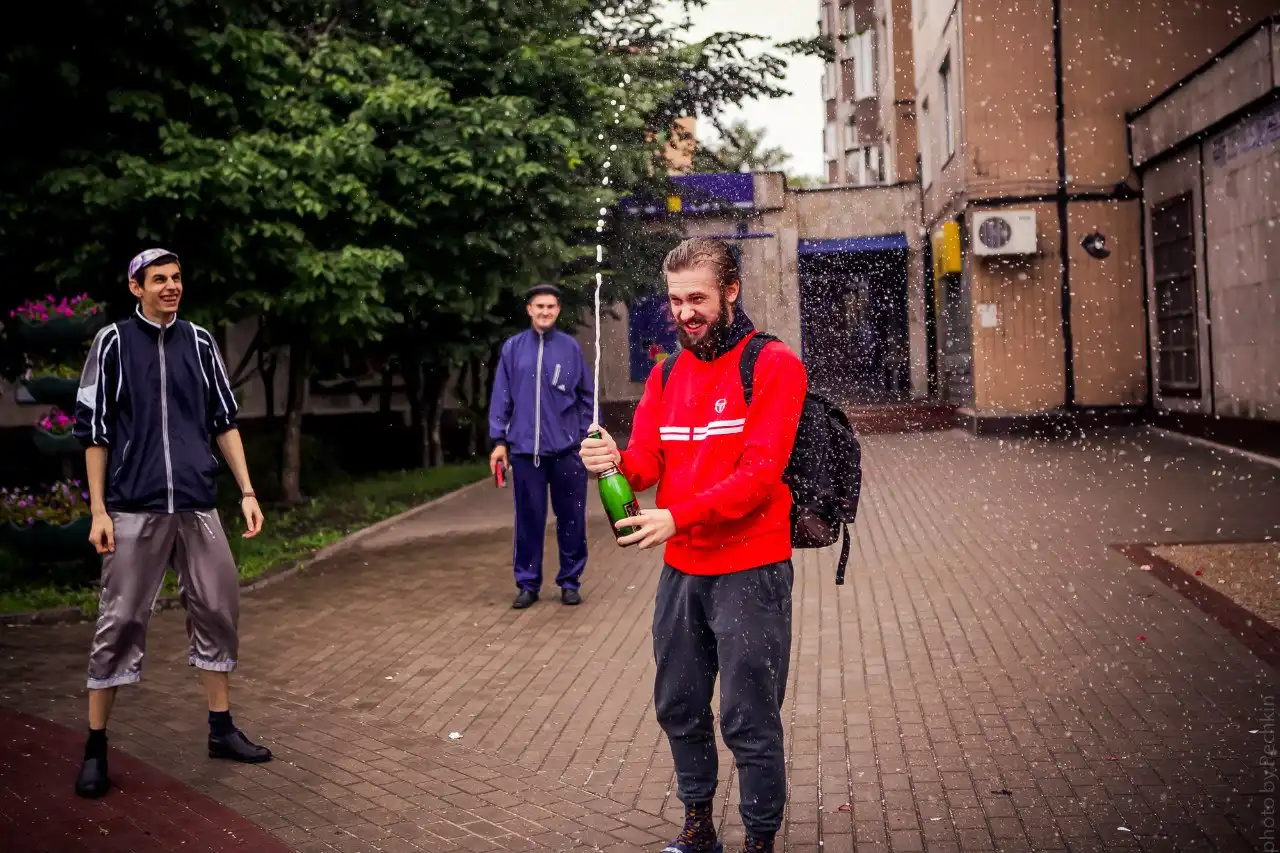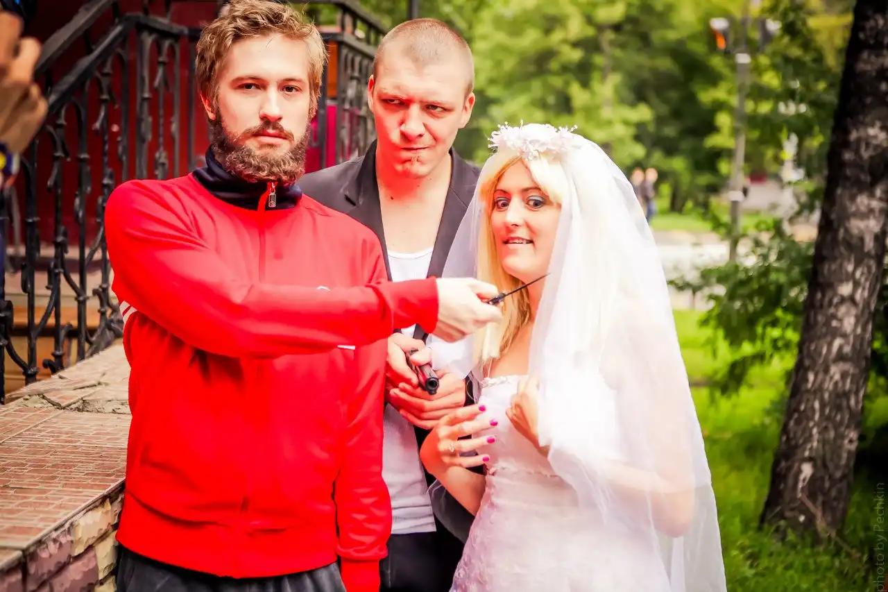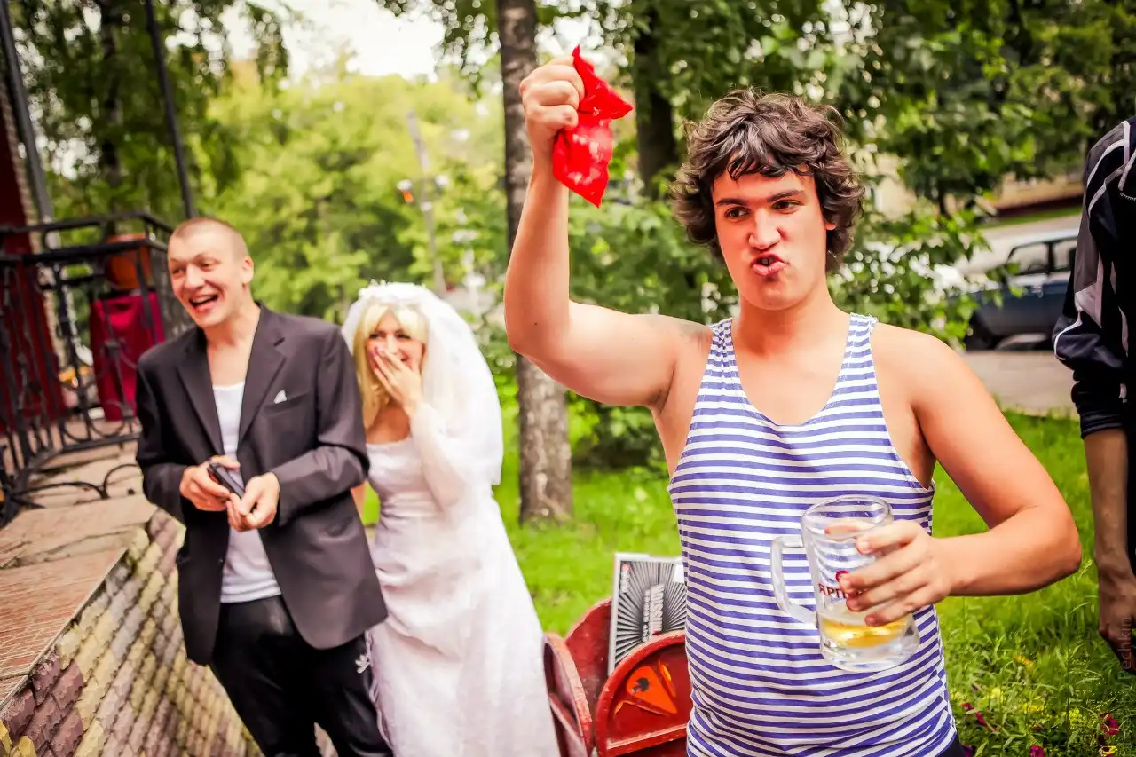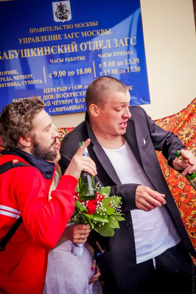 В минувшую субботу состоялось потрясающей, по своему калориту, свадьбе вышеупомянутых мною людей.Виталик не поскупился и отжал невесте кольцо как настоящий пацан за 2 чирика в переходе. Чётко!Гости были очень галантны и сплёвывали непосредственно себе под ноги, а не как какие-то уважаемые в урны.Опщем представляю вам у просмотру сверхчёткую пару Виталик и Ирка и их крайне ровную свадьбу: