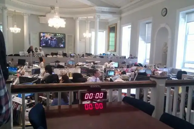 А вот общий вид рабочего кабинета, откуда Блумберг и его помощники управляют гигантским городом (бюджет в 2013 — 70 миллиардов долларов). Это место называется bullpen.